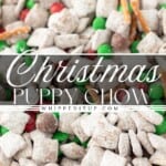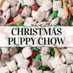 - Christmas puppy chow is festive and fun! Red and green mix-ins make it look instantly Christmas ready, so it's perfect for parties, cookie trays or gift-giving.