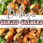 For entertaining, these skewers fit right in alongside delicious bites like these Hawaiian sliders, honey garlic salmon bites, and mac and cheese squares. They're also a perfect addition to pasta dishes, try them with pesto chicken bake, creamy gouda mac and cheese, and a quick rośe penne or avocado carbonara for an easy meal. Or, a more classic pairing is serving the grilled shrimp skewers with a salad like this grinder salad, strawberry chicken salad or kale caesar salad.