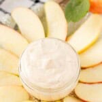 Serve the apple dip with apple slices or other fruits like strawberries, melon, bananas or pears.
